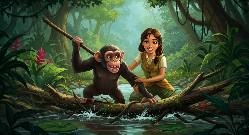 जंगल में एक शरारती चिंपांज़ी रहता था, जिसका नाम चिंपू था। चिंपू बहुत चंचल था और उसे जादू के छोटे-मोटे कमाल दिखाना बहुत पसंद था। जंगल के सभी जानवर उसे और उसके जादू को जानते थे। चिंपू का सबसे बड़ा मज़ा था जंगल में उछल-कूद करना और नए-नए खेल खेलना।